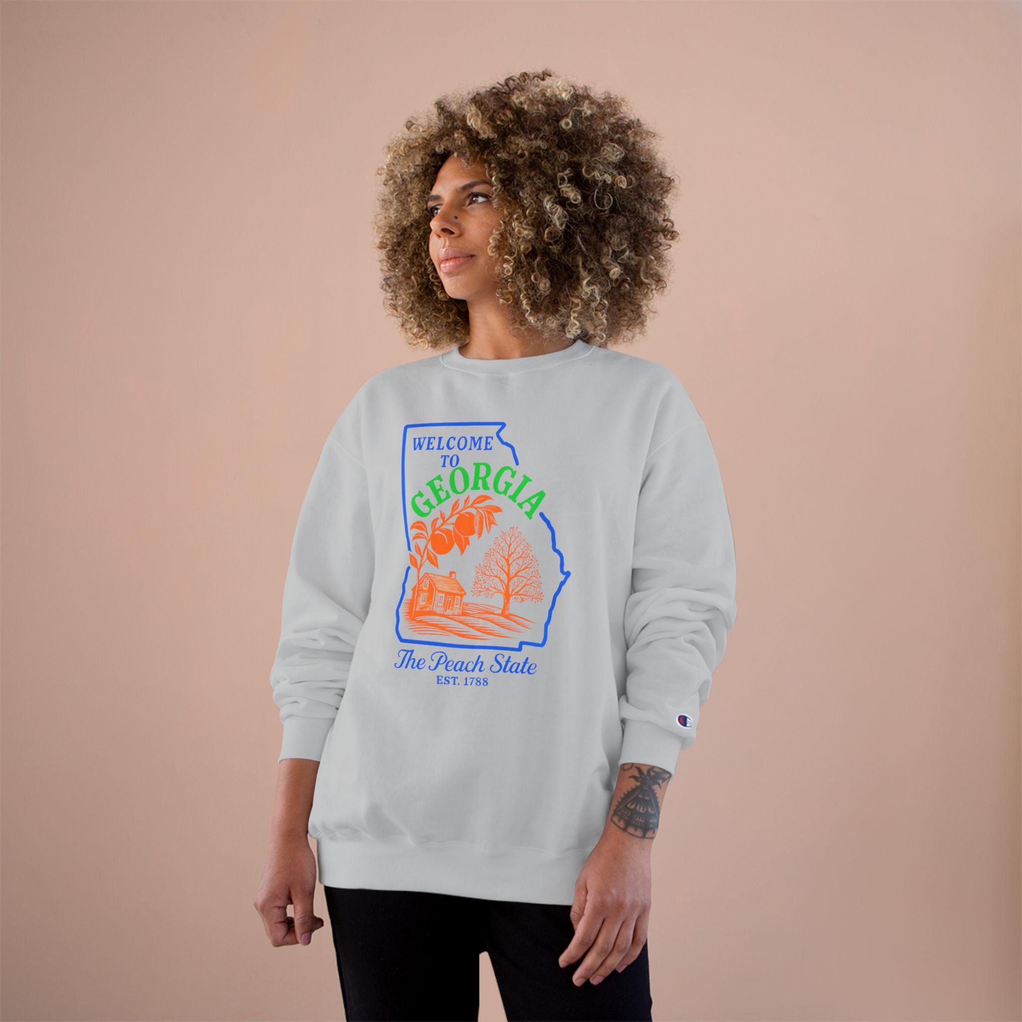 - Sewn label and small Champion "C" logo on left sleeve